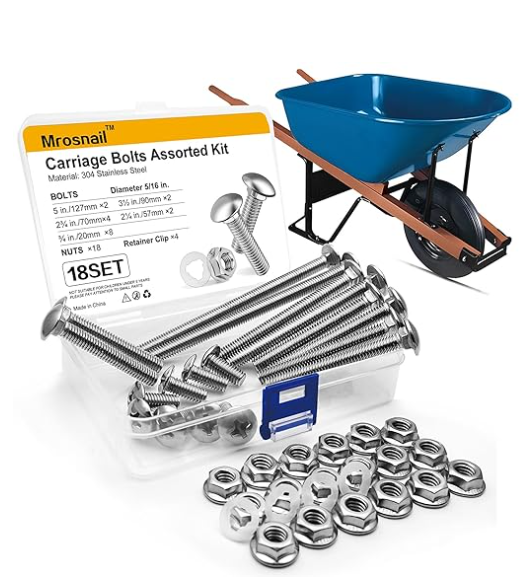 - [Multiple Bolt Lengths for Wheelbarrow Repairs] Includes assorted bolt lengths (5″, 3-1/2″, 2-3/4″, 2-1/2″, 3/4″) to support common wheelbarrow handle and hardware replacements.
